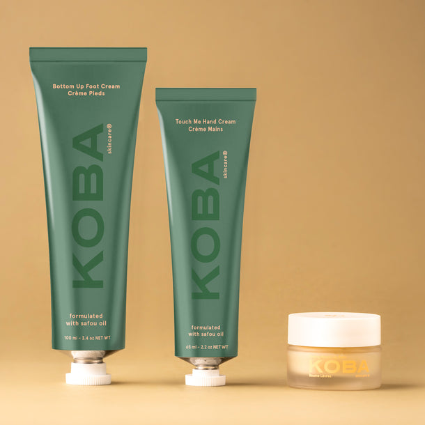 KOBA is an effective and efficient solution for those looking for a premium alternative to often non-aspirational pharmaceutical creams. Our products are simple to use and fit easily into any skincare routine. They provide long-lasting hydration, visibly improve the texture of the skin by making it smoother and have a natural and refined scent. All good reasons to carry them around from your bathroom shelves to your handbag, to your desk.